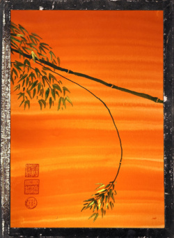 The sumi-e are ink paintings. Like calligraphy, space between and around things is as important as the thing itself. There are examples here of bamboo (strong and flexible); butterflies (flapping wings to cause whole systems to change); plum blossom (first signs of spring after cold winter); dragonflies; maples leaves falling; and combinations of plants and insects.